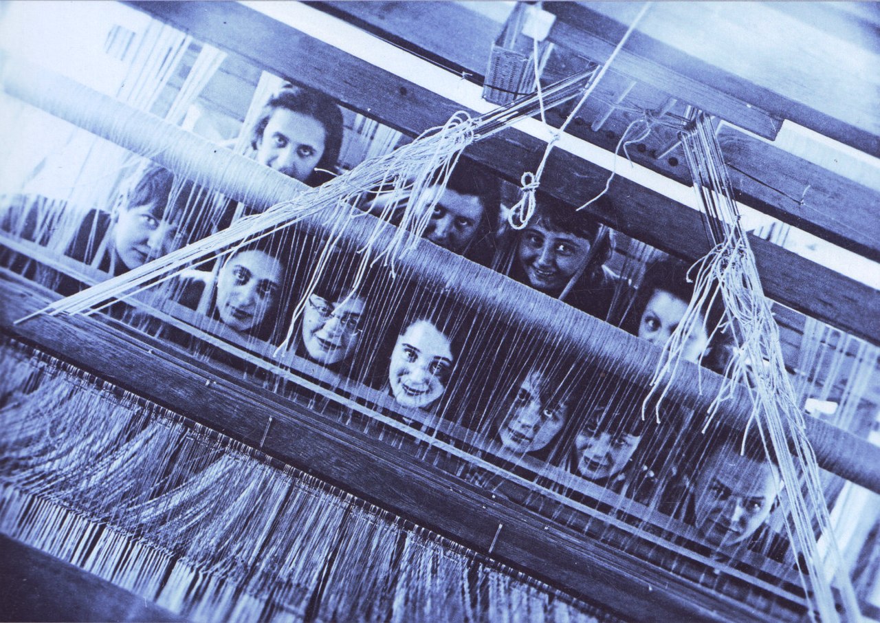 Foto di gruppo per le iscritte alla classe di tessitura (Wikimedia commons)