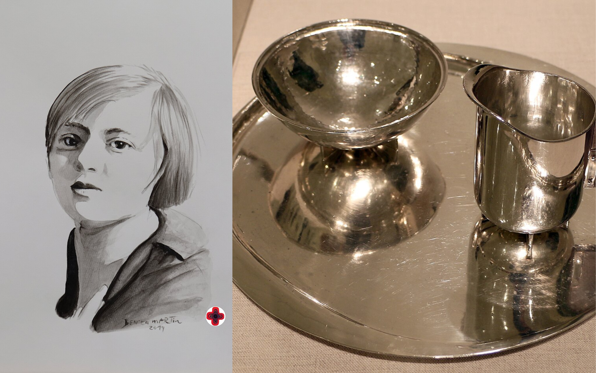 Ritratto di Marianne Brandt e il suo servizio da the (cr. B. Martin e sailko Wikimedia commons)