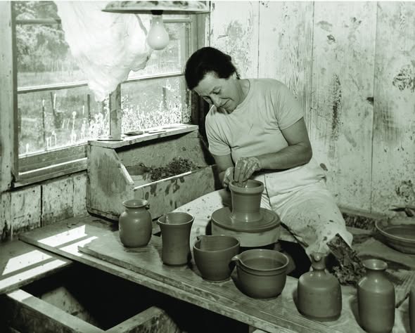 Marguerite Friedlaender modella le sue ceramiche (dalla pagina Fb Sfo museum)