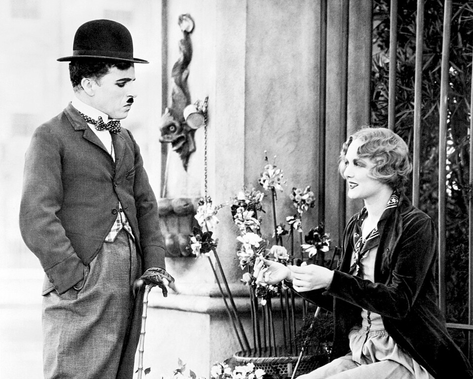 Chaplin con Virginia Cherrill in "City lights", Luci della città (cr. Unites artists Wikimedia commons)
