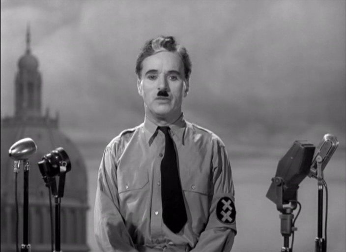 Sono le parole finali del cosiddetto “discorso all’umanità” che il barbiere ebreo, sul podio al posto del dittatore, pronuncia nel finale del film, e che più volte negli anni successivi gli fu chiesto di ripetere, anche dallo stesso Roosevelt in diretta via radio.