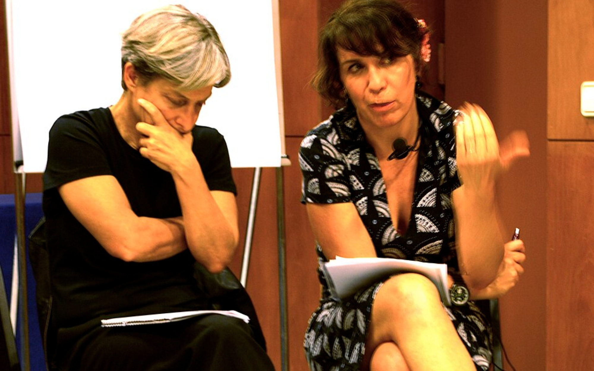 Butler con l'interprete in un convegno (cr. gaelx Wikimedia commons)