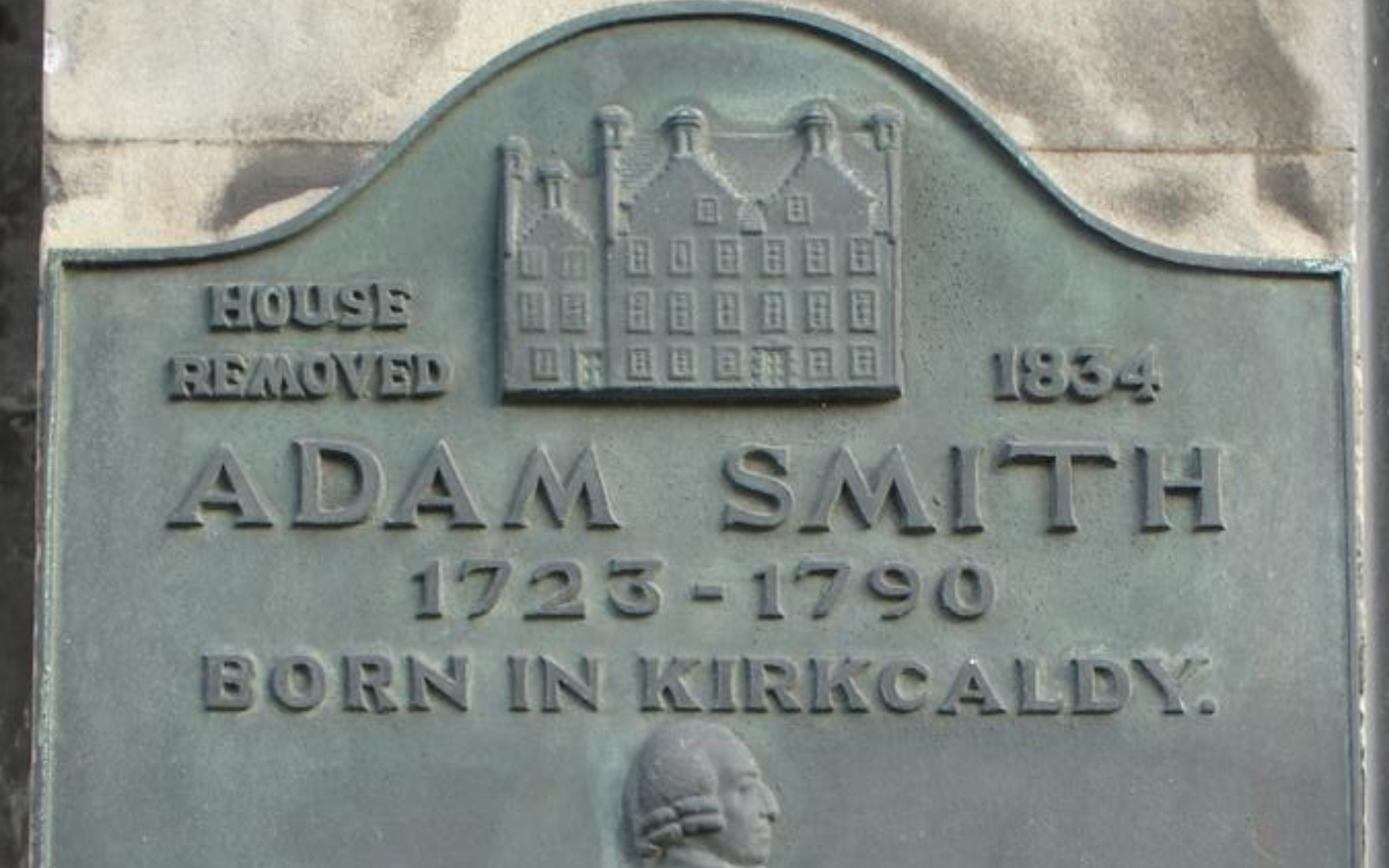 La targa apposta a Kirkcaldy in onore di Smith (cr. J. Eaton-lee Wikimedia commons)