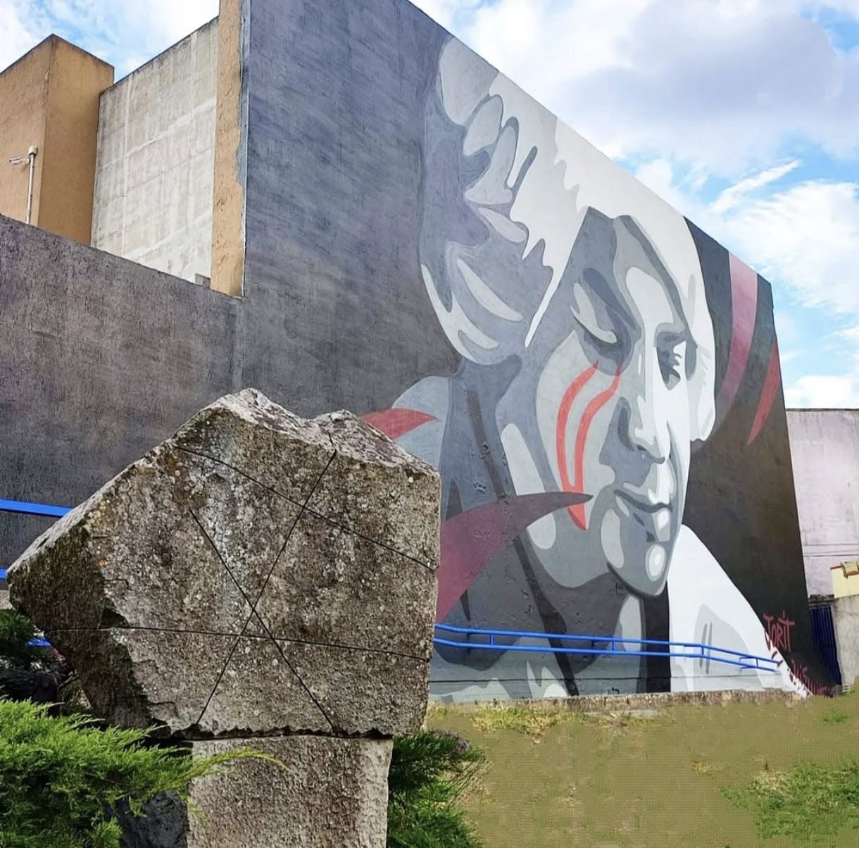 Il murale su Grazia Deledda realizzato da Jorit nella biblioteca Satta di Nuoro (dalla pagina Fb PROF.DEB)