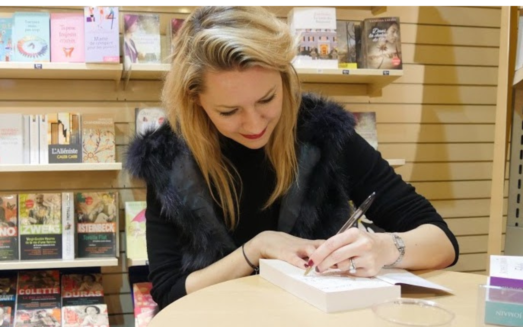La scrittrice Gwendolyne Finaz de Villaine firma dediche (cr. Bibalou 78 Wikimedia commons)