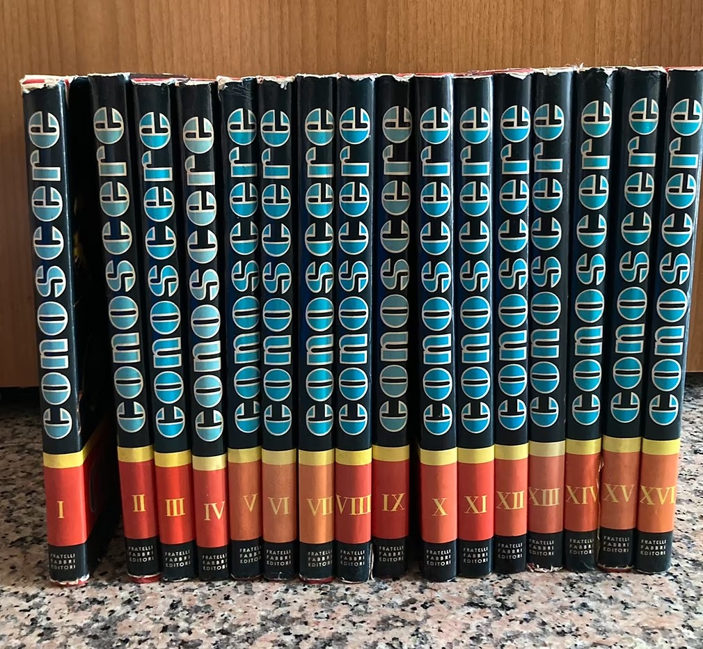 Tra i titoli che andavano per la maggiore potevamo trovare Conoscere dei Fratelli Fabbri Editori, che fu il mio punto di riferimento alle elementari (poi arrivò l'enciclopedia Motta). Il suo successo fu epocale, anche per la sua inusuale struttura. Le voci non erano in ordine alfabetico, ma assolutamente casuale, ad ogni argomento erano dedicate due pagine riccamente illustrate, ma con l’assenza completa di fotografie. Il tutto era un invito a sfogliare e a incuriosirsi di tutto, e con me funzionò alla grande.