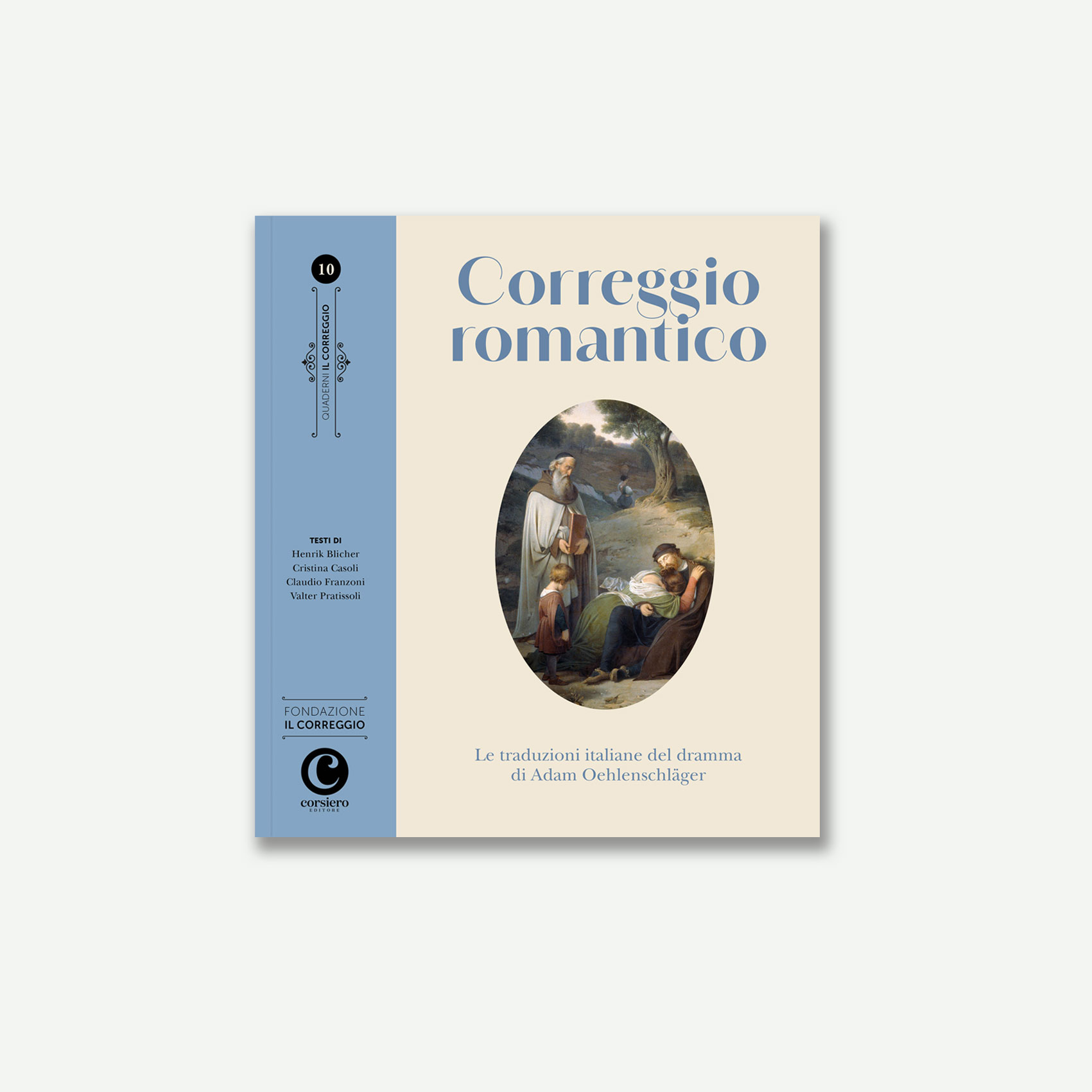“Correggio” è un’opera teatrale del 1811 che ottenne un notevole successo in Danimarca, in Germania e in Austria. L’accoglienza fu tale che venne prodotto addirittura un puzzle basato su una stampa ispirata al dramma. In Italia “Correggio” ebbe una duplice traduzione, la prima del pisano Olinto dal Borgo (basata sull’originale danese) e una seconda del modenese Bartolomeo Benincasa che invece prese le mosse dalla versione in tedesco. Oehlenschlager nel suo dramma non si basò su una esatta ricostruzione della vita del Correggio (affidandosi in questo alla biografia del Vasari) badando soprattutto a portare in scena la relazione fra l’artista e alcune fra le sue tele, delle quali si trovano riferimenti precisi nel quaderno curato da Claudio Franzoni.