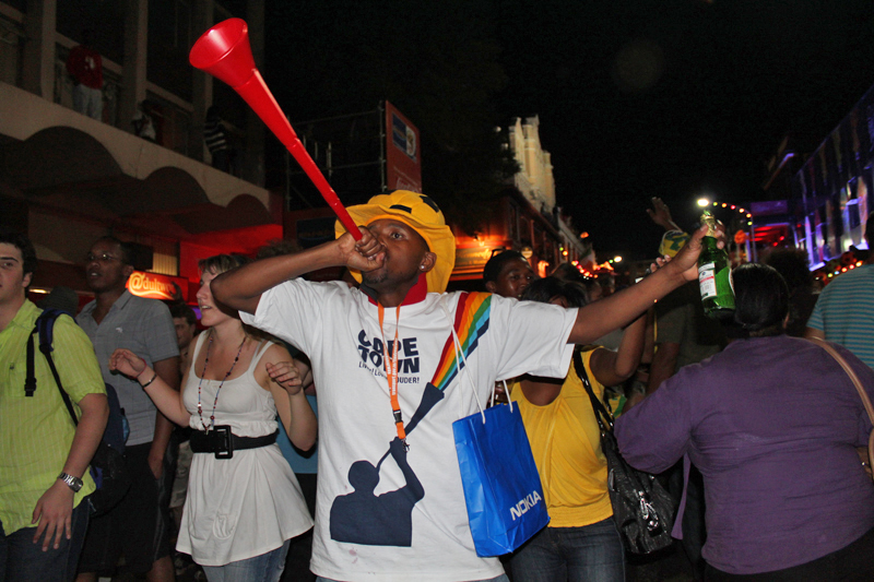 Un tifoso con vuvuzela a Città del Capo (cr. Flowcomm Wikimedia commons)