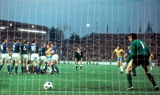 Il pallone, colpito di sinistro con precisione e potenza dal campione brasiliano infila con precisione il varco, senza neanche sfiorare le braccia dei tedeschi, ed entra in porta mentre il portiere Croy assiste impotente. Il Brasile vincerà 1-0 quella partita, per merito del grande Rivelino.