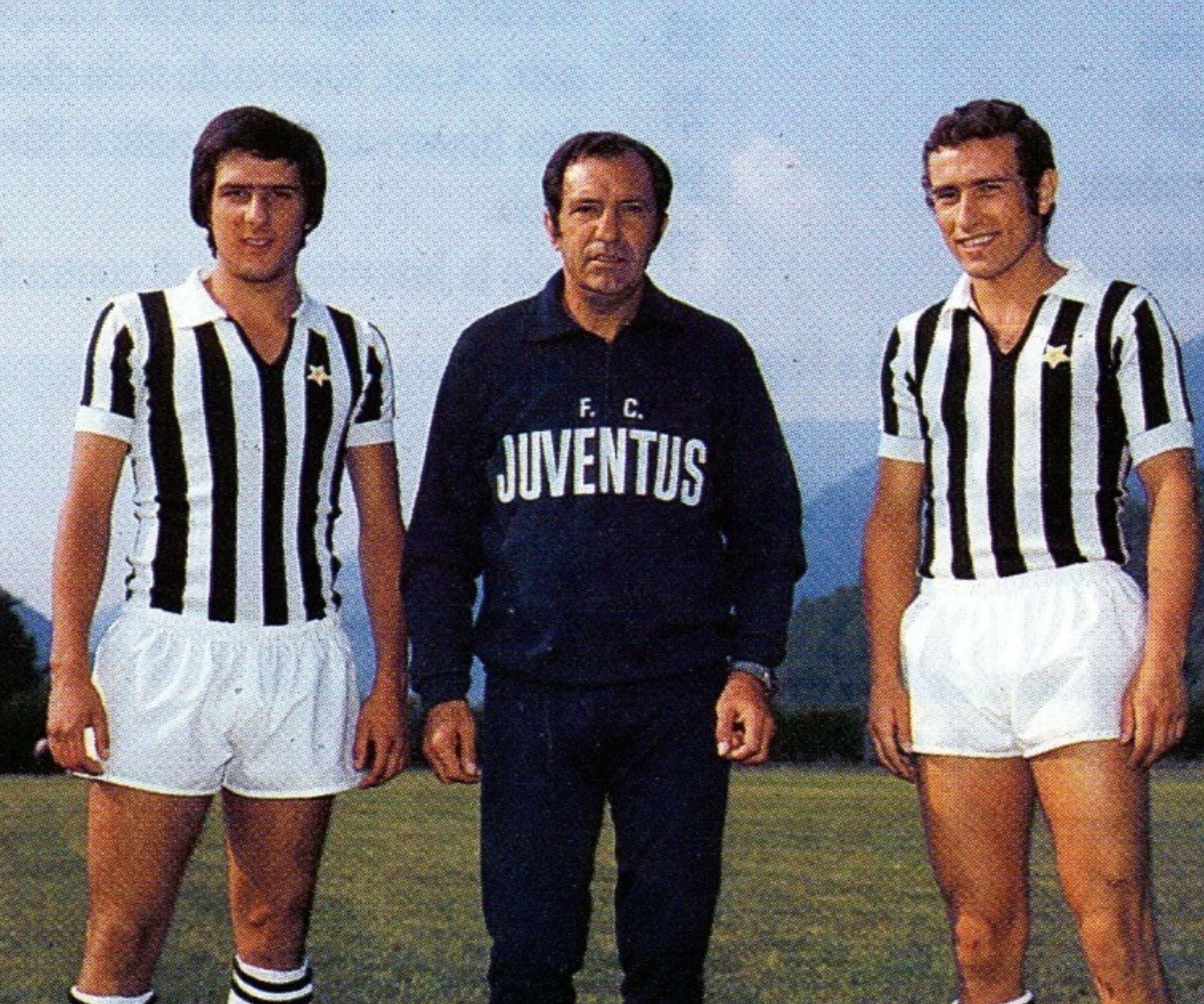 Scirea in maglia juventina con il tecnico Parola e Damiani (Wikimedia commons)