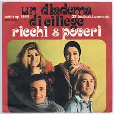 E, ancora una volta, dai Ricchi e poveri, con Un diadema di ciliege, che ci racconta di un giovane artigiano che lascia il suo paese per una triste catena di montaggio urbana. Tornerà finalmente a casa, ma la sua fidanzata, “la più bella del villaggio”, ormai si è spenta.