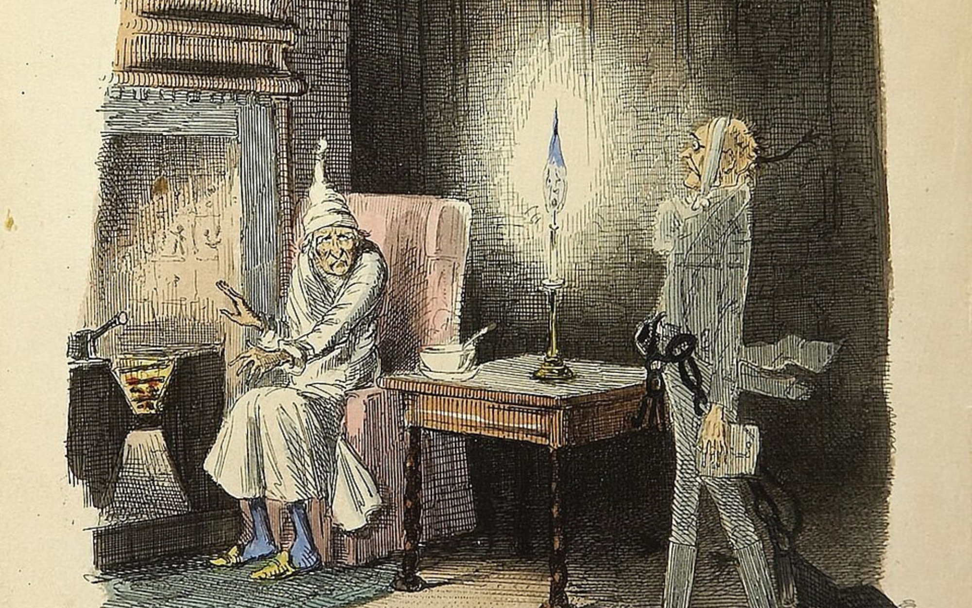 John Leech, "Scrooge e il fantasma del Natale" (Wikimedia commons)