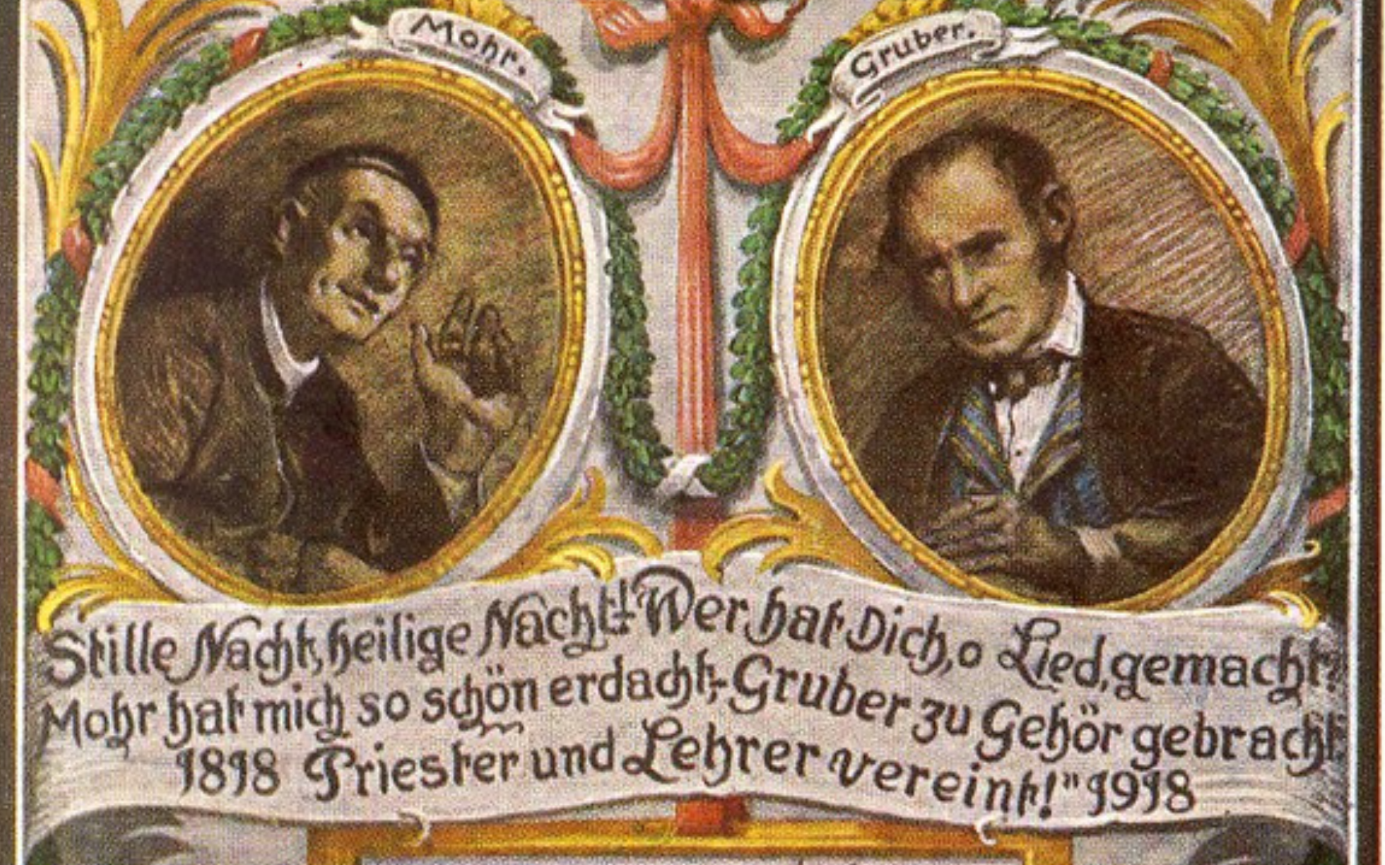 Gli autori di Stille Nacht nella cartolina per il centenario della canzone (cr. Gruber Wikimedia commons)