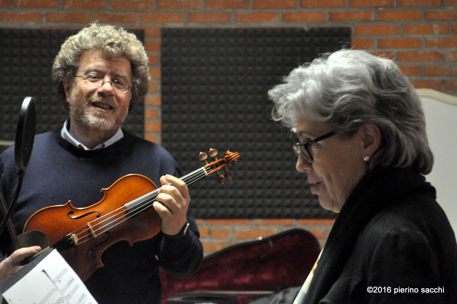 Il maestro Schiavo durante una registrazione con il contralto Sara Mingardo (cr. Pierino Sacchi)