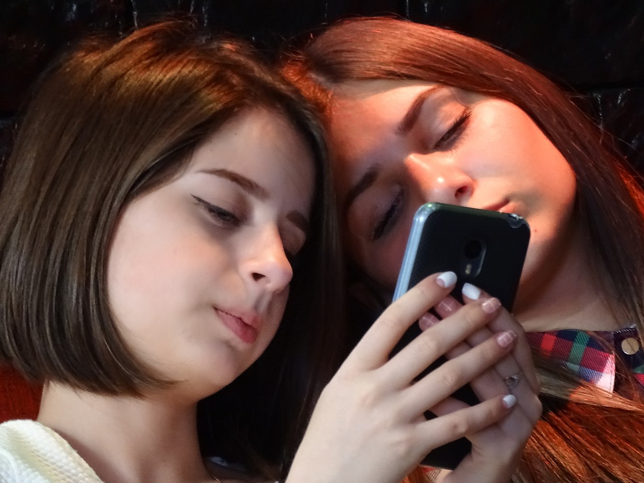 Due ragazze digitano sui loro telefonini cellulari (cr. Tammy McGary Wikimedia commons)
