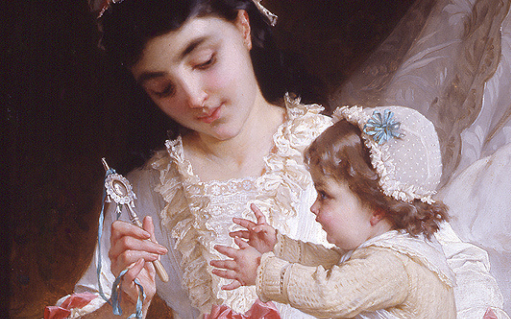 Emile Munier, "Distracting baby" (Wikimedia commons)