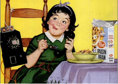 I bambini hanno sempre giocato un ruolo importante nella pubblicità (cr. Post raisin bran Wikimedia commons, 1958)