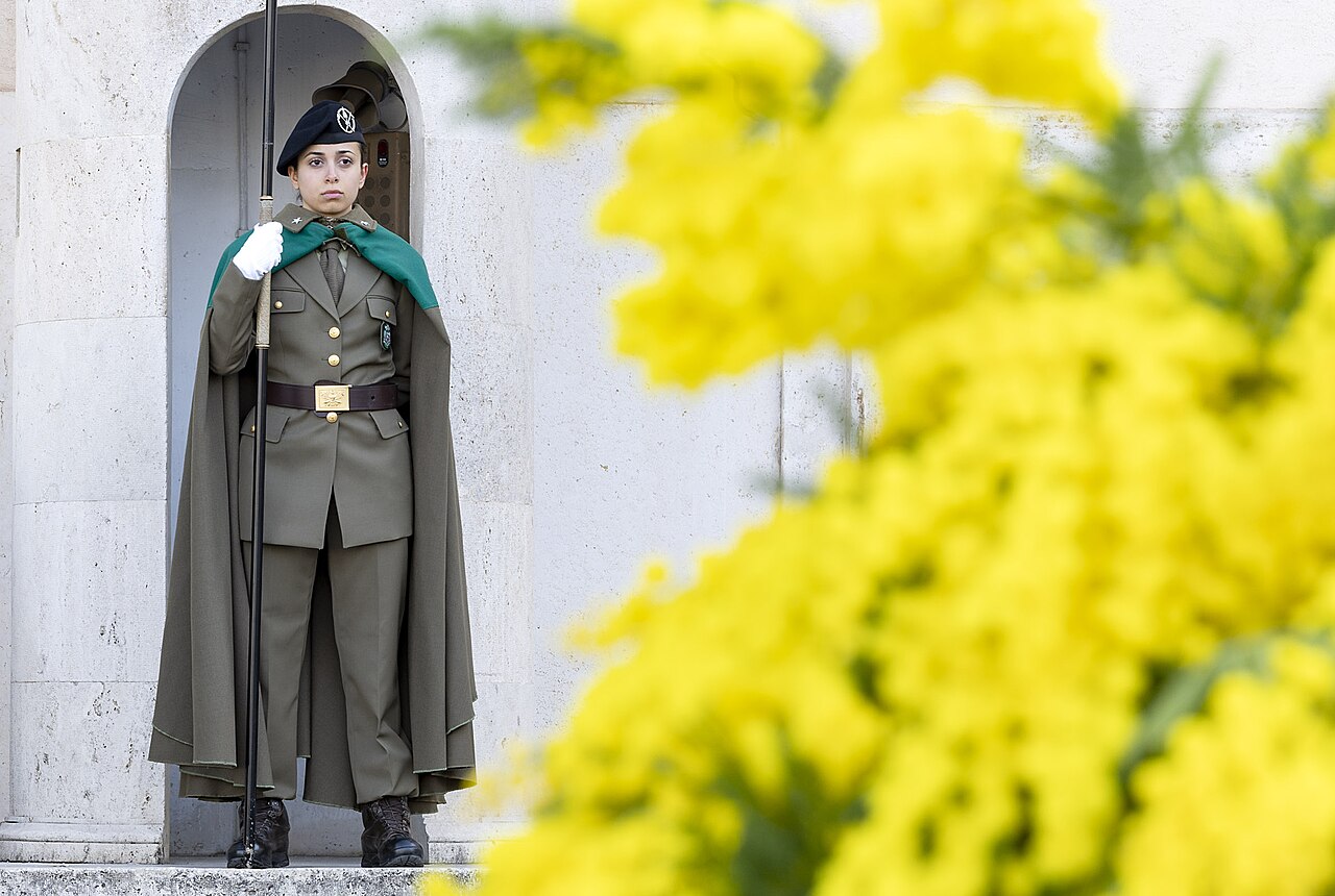 Una donna soldato all'ingresso del Quirinale l'8 marzo (cr. Quirinale Wikimedia commons)