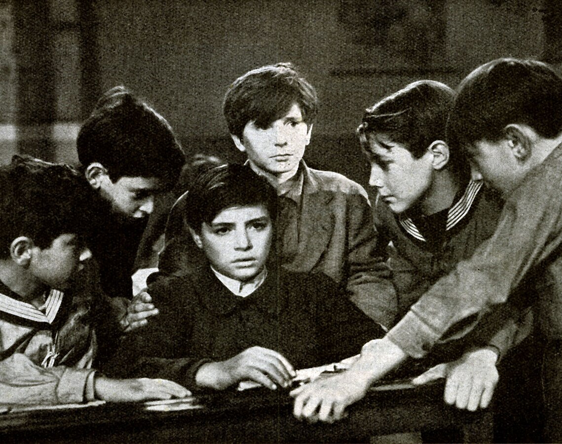 Scena da "Cuore", film del 1948 tratto dal romanzo ambientato a scuola (cr. D. Coletti Wikimedia commons)