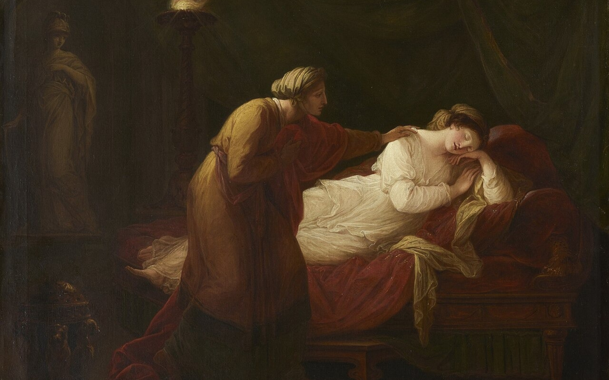 A. Kaufmann "Penelope svegliata da Euriclea al ritorno di Ulisse", Odisseo (Wikimedia commons)