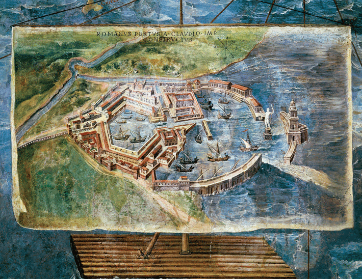 Affresco in Vaticano che riproduce l'antico porto di epoca romana (cr. Jason Urbanus Wikimedia commons)