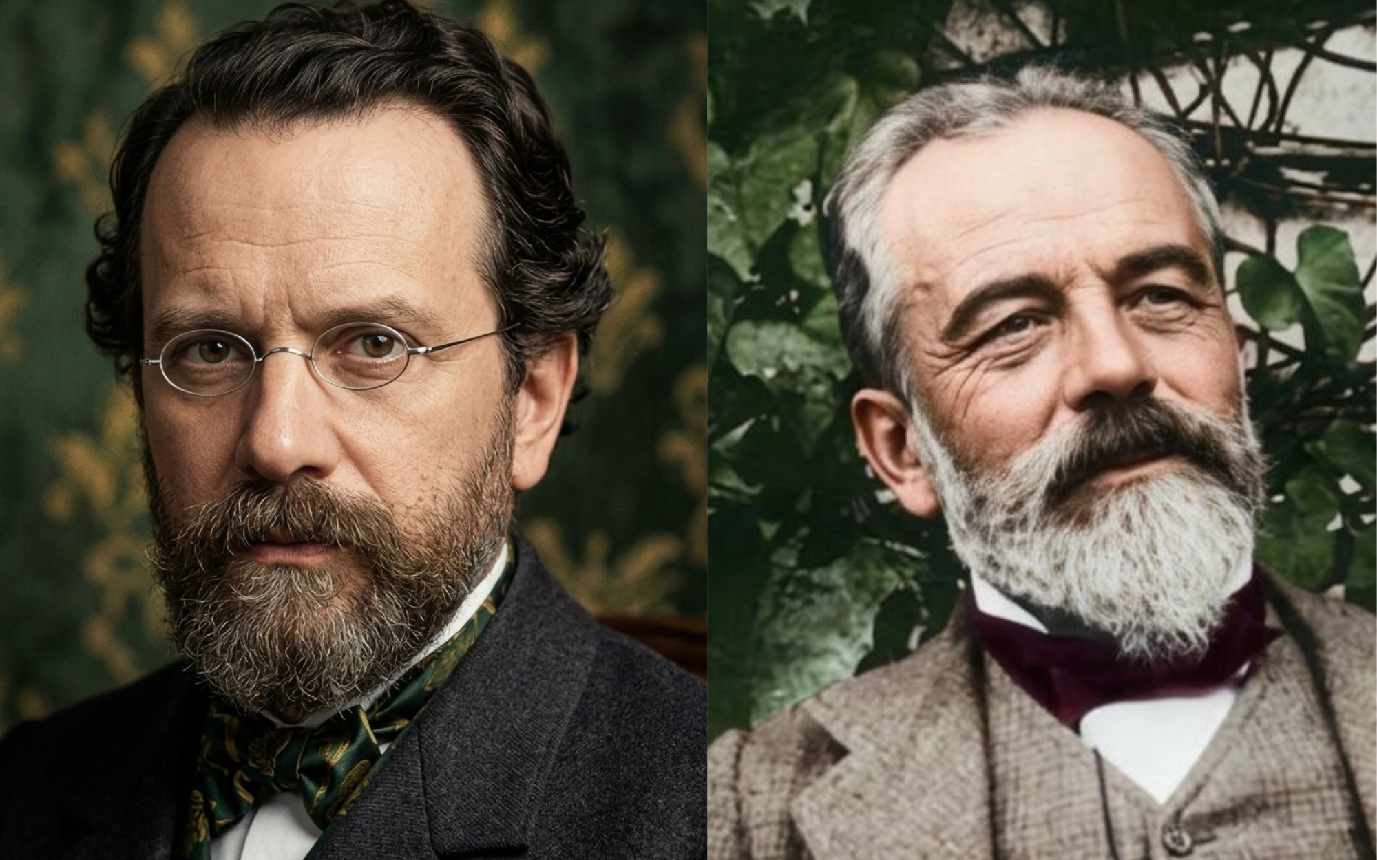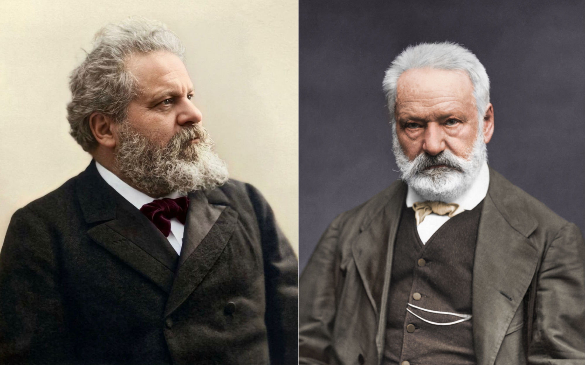Foto colorate di Giosuè Carducci e Victor Hugo (cr. E. Carjat per Hugo Wikimedia commons)