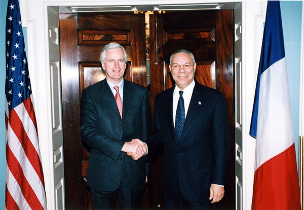 Powell con il ministro degli esteri francese Barnier, 2004 (cr. Dipartimento di Stato Wikimedia commons)