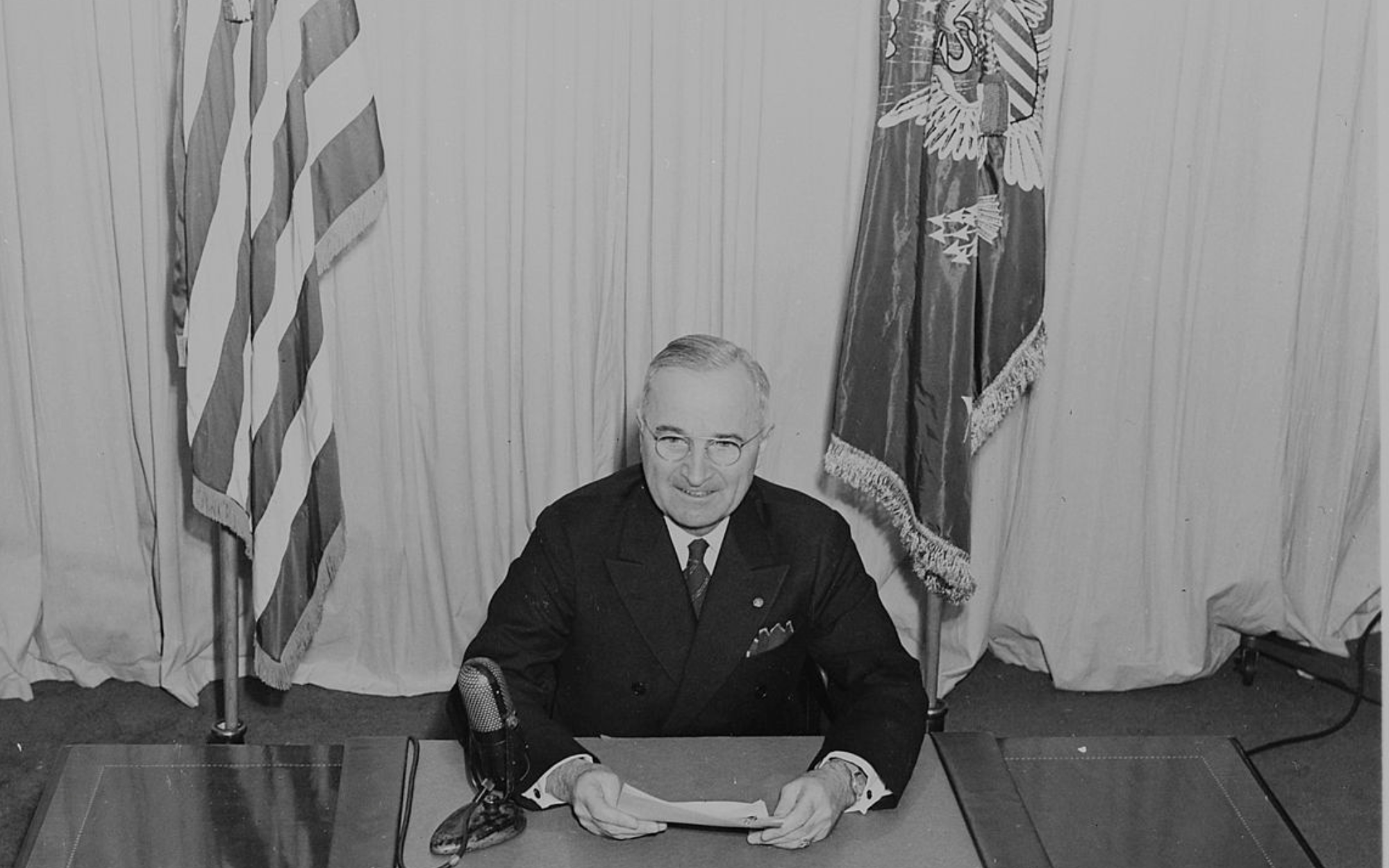 Il presidente Harry Truman annuncia la fine della guerra in Europa (cr. Abbie Rowe Wikimedia commons)