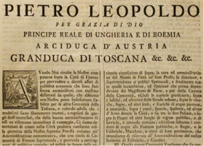 Il 30 novembre di quell’anno veniva emanata la “Riforma Criminale Toscana”, in pratica il nuovo Codice Penale, che all’articolo LIX recitava: