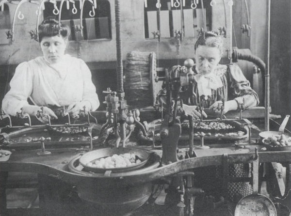 Donne al lavoro nella filanda Puricelli Guerra, fino 800 (Wikimedia commons)