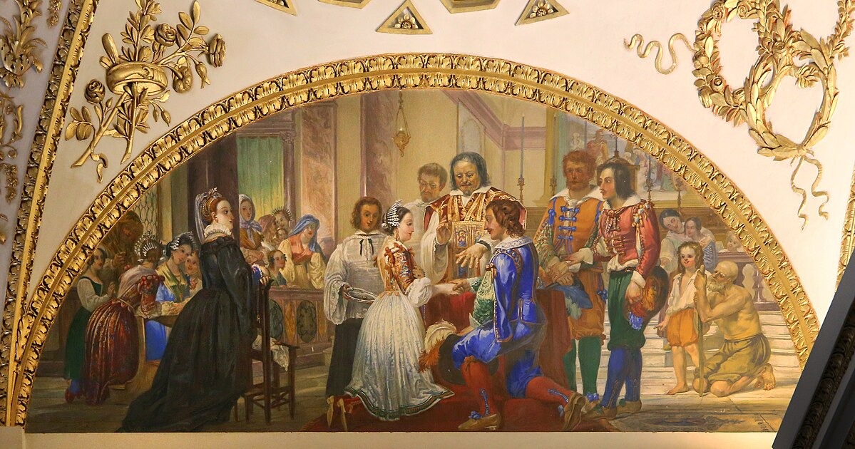 Niccolò Cianfanelli, "Matrimonio di Renzo e Lucia", Palazzina della Meridiana. Il manzoniano Renzo era operaio filatore (Wikimedia commons)
