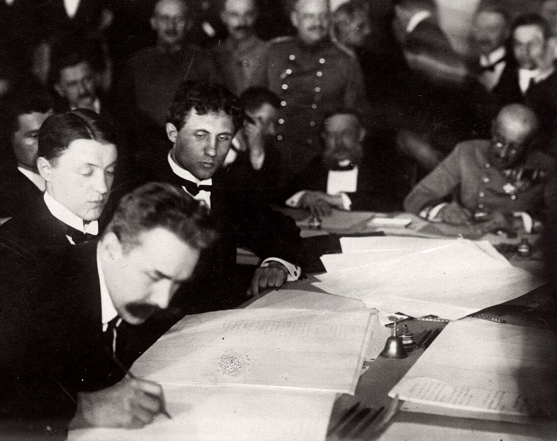La firma del trattato di Brest-Litovsk, 1918 (Wikimedia commons)