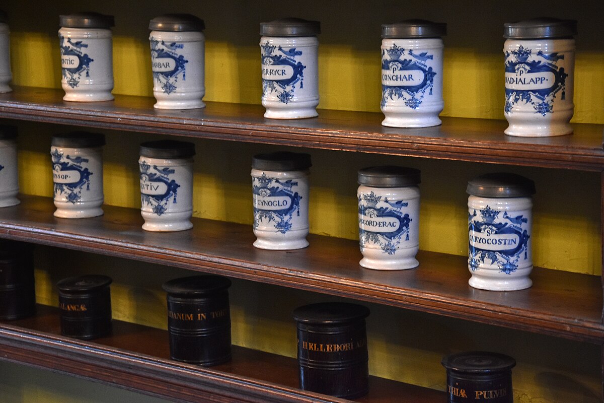 Antichi vasi della farmacia di San Jans a Bruges (cr. Phyrexian Wikimedia commons)