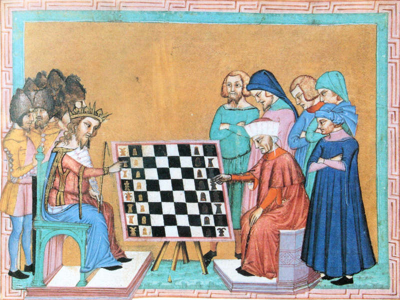 Jacques de Cessoles "Il re scacchista", miniatura del XV secolo (Wikimedia commons)
