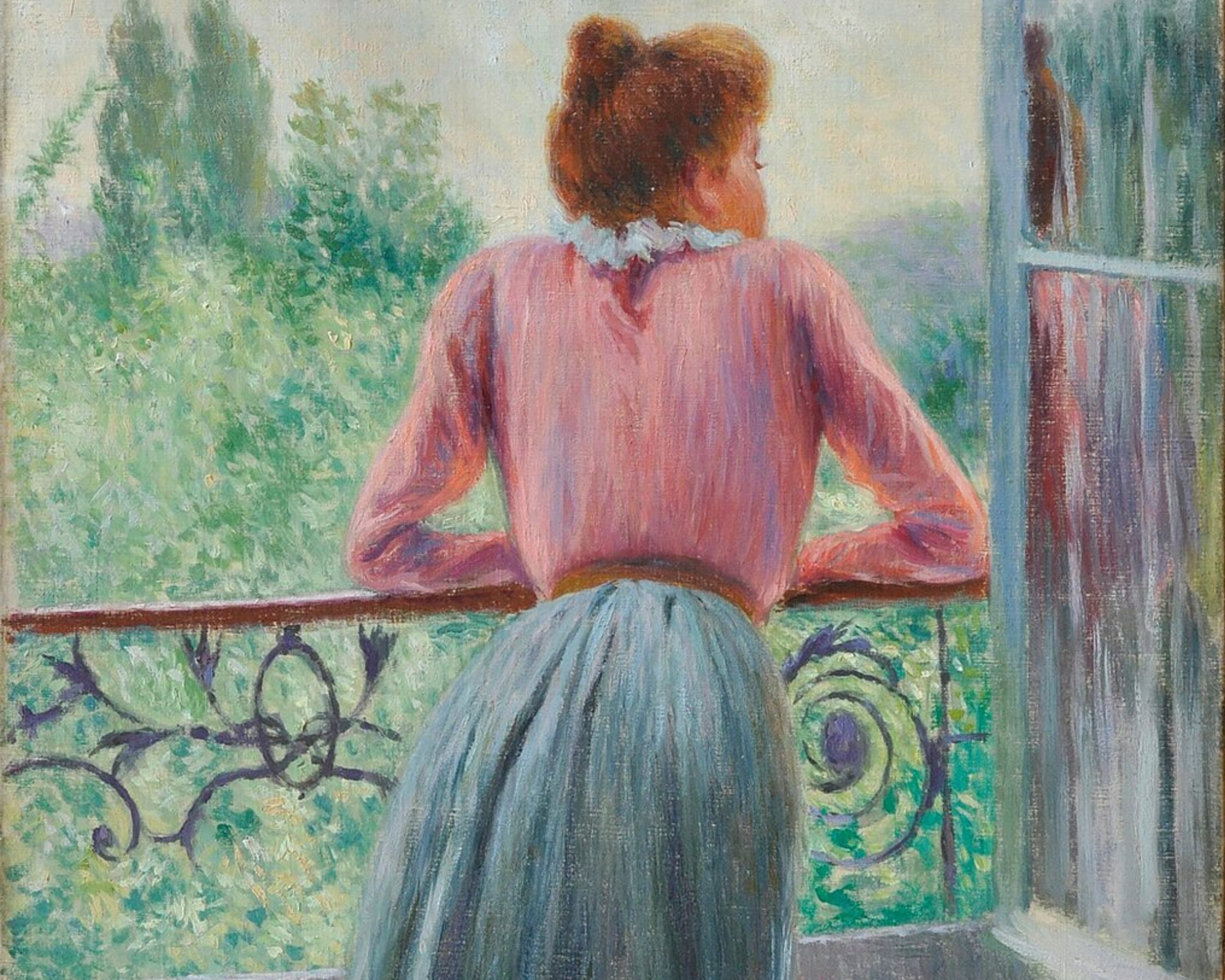 "Mio figlio dice che non dovrei affacciarmi" Particolare da "Donna al balcone" di F. Zandomeneghi (Wikimedia commons)