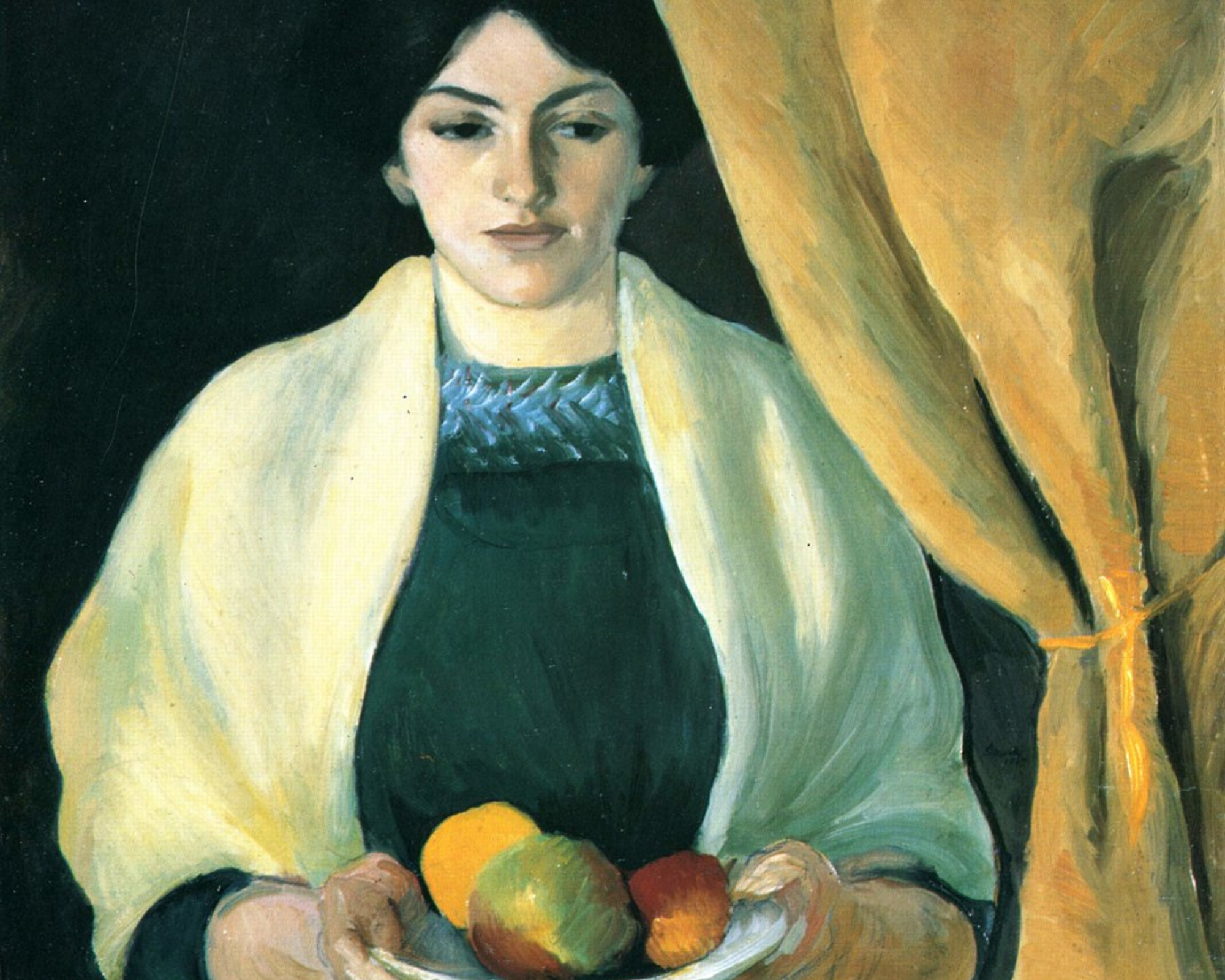 "Un giorno decisi di smettere lo scialle" August Mack "Ritratto con mele" (Lenbachhaus Monaco Wikimedia commons)