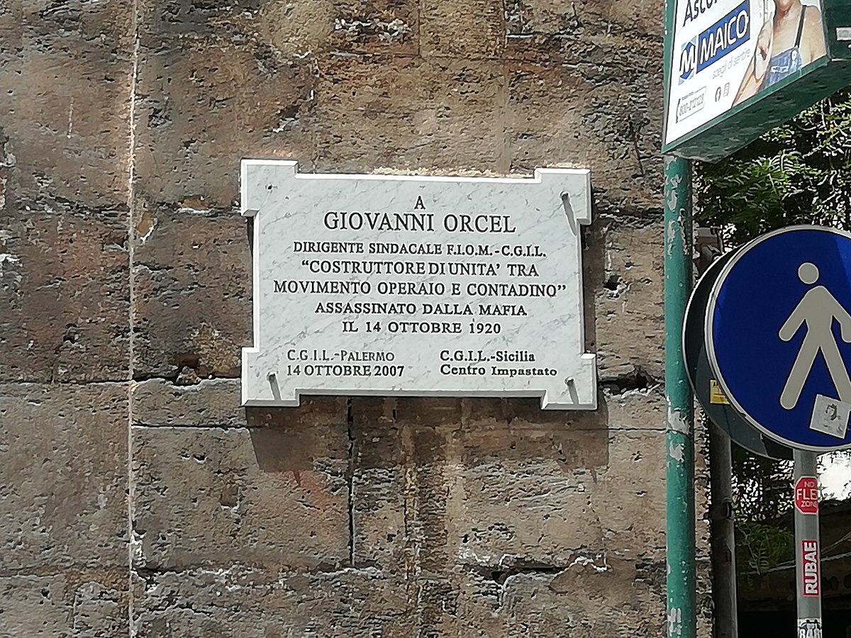 La targa apposta a Palermo in memoria di Orcel (cr. lucafavorido Wikimedia commons)
